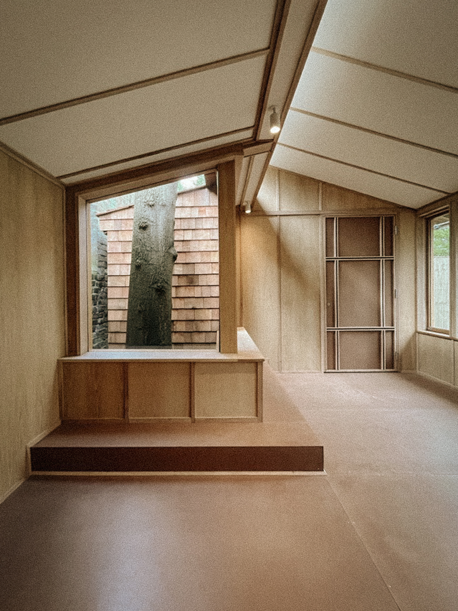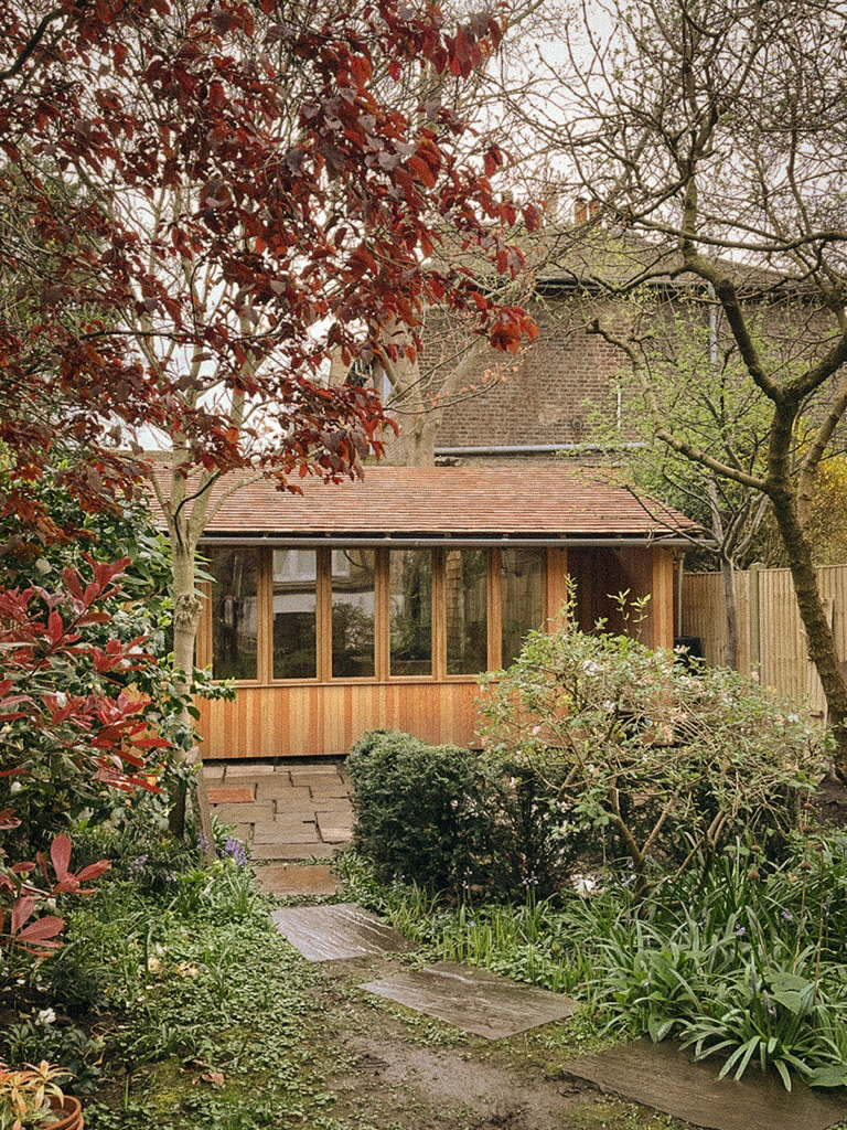 Willow House was designed to provide the clients with a practical, peaceful workspace - a respite in the heart of East London. Built around a mature tree, preserving its root structure, it sits lightly on the land, mounted on ground screw foundations to minimize soil disruption. The use of sustainable materials such as wood fibre insulation and untreated timber reflect a commitment to minimise its environmental footprint.